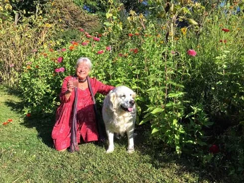 Abbey is as happy as ever - especially since there's plenty of snow for making snow angels - and because there's a fox nearby giving her a reason to investigate his trails and activity. On Friday, her best friends Lisha and Lara came to mulch the berries and make wreaths to her great delight.